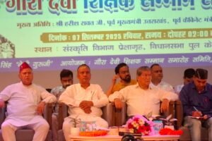 देहरादून: आज दिनांक 7 सितंबर 2025 को संस्कृति विभाग प्रेक्षागृह देहरादून में गौरा देवी शिक्षक सम्मान समिति द्वारा जनपद देहरादून के शिक्षकों को सम्मानित किया गया। समिति के मुख्य अतिथि पूर्व मुख्यमंत्री हरीश रावत जी एवं महावीर सिंह रावत पूर्व राज्य मंत्री रहे। कार्यक्रम का शुभारंभ मुख्य अतिथियों एवं संगठन के पदाधिकारी द्वारा दीप प्रज्वलित कर…